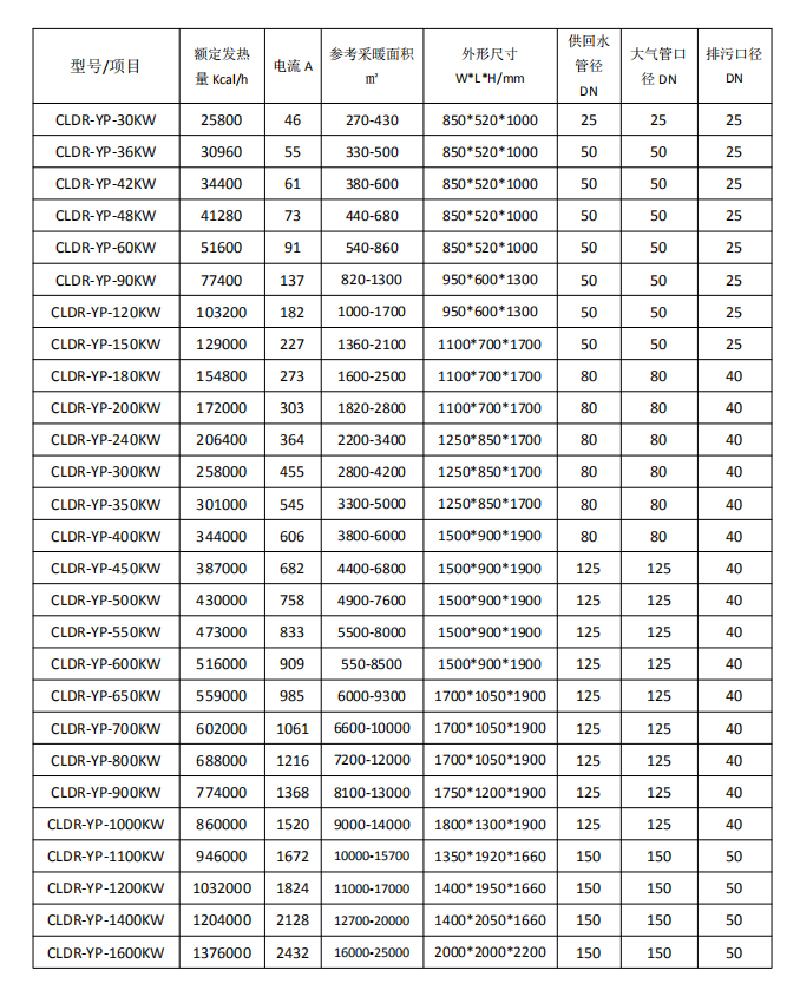 9.工作壓力;常壓(開放式)。如承壓系統(tǒng),只需在系統(tǒng)上配置板式換熱器即可實現(xiàn)鍋爐的常壓安全運行。